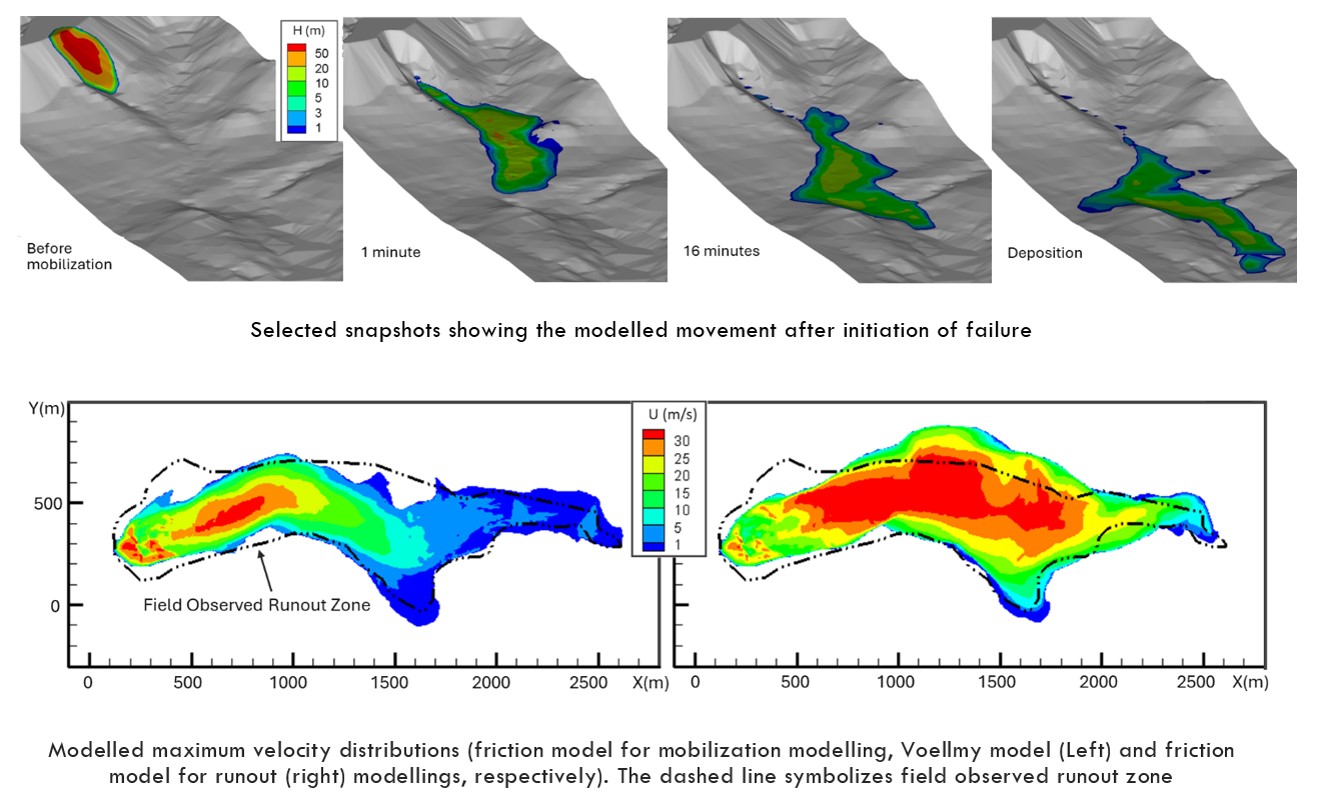 For design, operation, monitoring and closure of mine waste dumps and stockpiles, an evaluation of downstream impact from a potential failure by considering the runout hazard area is one of the factors in assessment of the facility consequence and to support decision making on potential mitigation treatments for estimated impacts to downstream infrastructure. Numerical modelling simulation is an effective approach for predicting hazard zones below a mine waste facility. Chen and Cunning (2025) outlined the analysis process and key components to consider, and presented a practical method for forward prediction of potential failure runout zone for a mine waste dump or stockpile facility. A reasonable simulation of the mobilization and runout behaviours can be achieved by considering failure mechanism, using appropriate modelling tools, choosing suitable material rheology and taking account 3D terrainy.